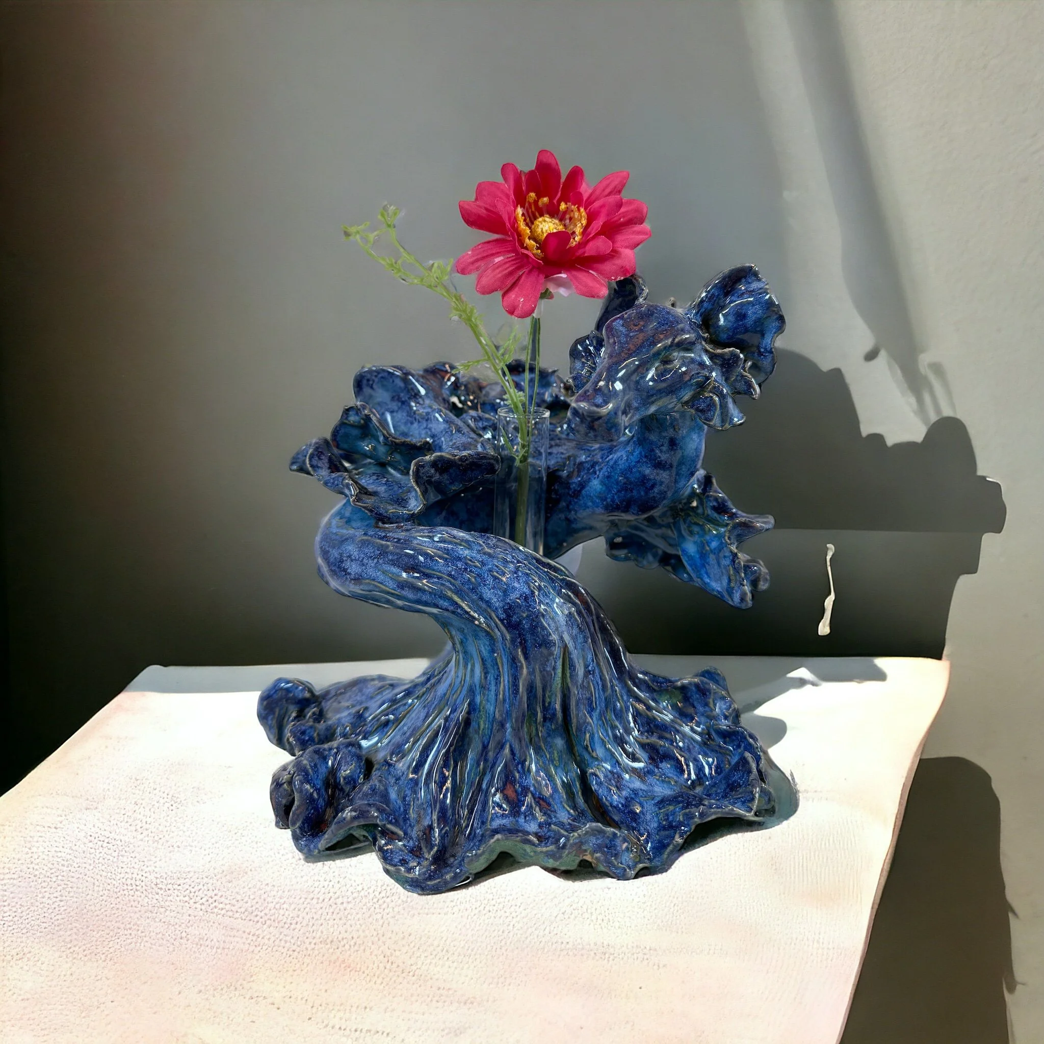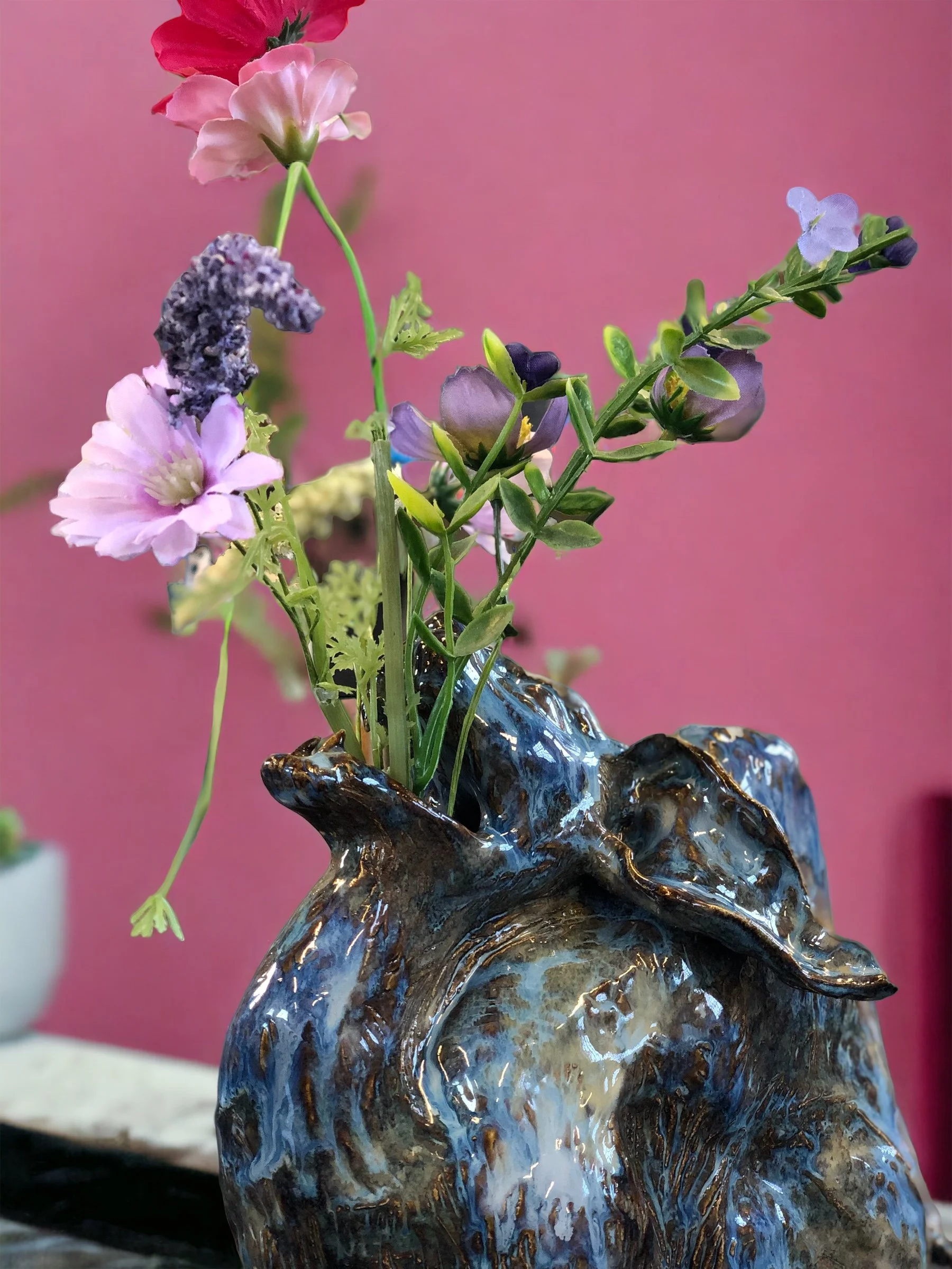 With my ceramic sculptures, taking on cat-like forms and also serving as vases for flowers—specifically poppies— It's a narrative that when someone dear passes away, life persists with the cherished memories we hold of them. Each sculpture narrates a unique tale, interweaving the legacies of those we have lost into our own lives.